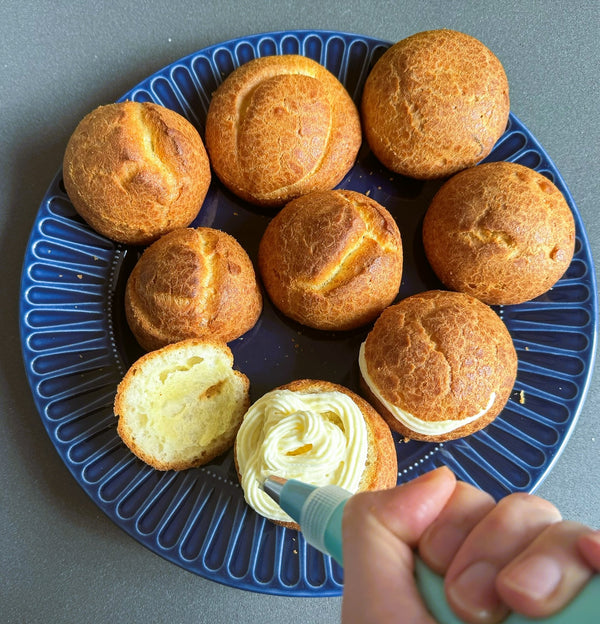 Originally from France, choux cream or Japanese cream puff, has become one of Japan's most popular pastries. This delightful treat features a round, golden-brown shell with a crisp, airy texture filled with smooth custard cream mixed with whipped cream.