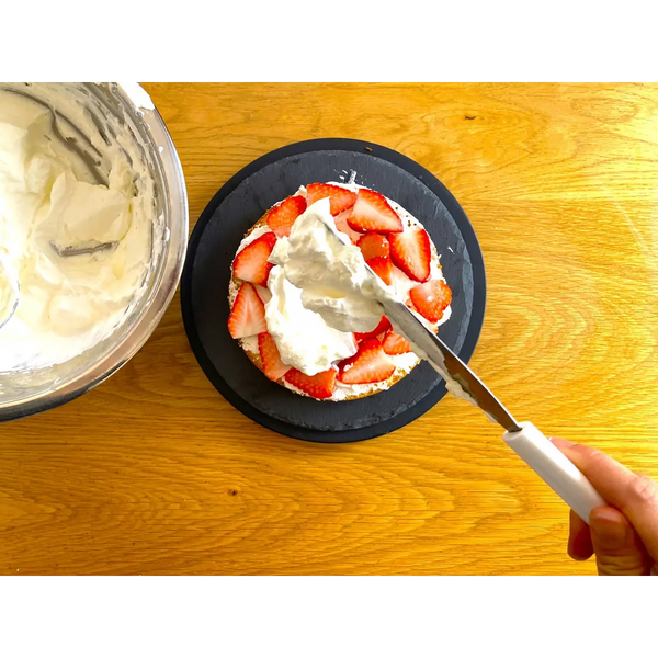 Achieving a perfect strawberry cream cake can be challenging. The decorating part may be especially difficult if you’re not used to frosting cakes at home. In this recipe, we provide the standard amount of fresh cream used for a 15cm cake, but you can also change up the amount of cream used if you’d like. You can also decorate the cake differently, by adding more layers of cream or omitting the cream altogether.