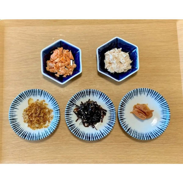 - Okaka (1g Bonito Flakes, 1 pinch of Sugar, 1/4 Tsp Soy Sauce)