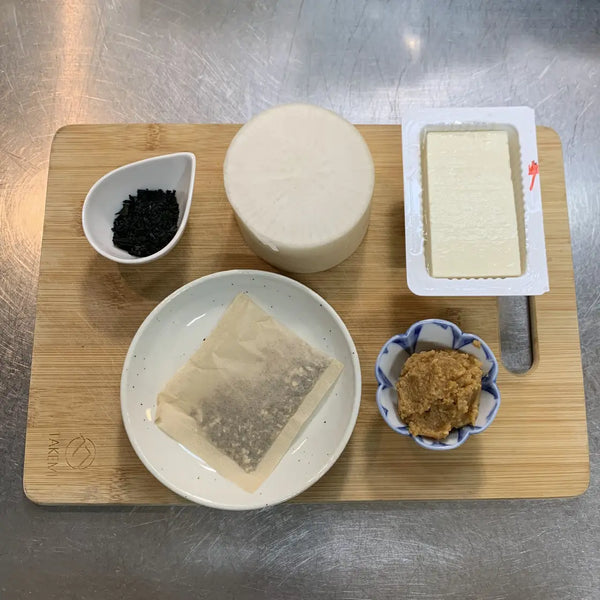 In order to allow the flavor of the miso to shine in this recipe, we are using very simple and standard miso soup ingredients. Ingredients such as tofu, wakame seaweed, and daikon radish do not have very strong flavors on their own, but they soak up the flavor of whatever they are being added to. They are classic ingredients used in miso soup, and they pair perfectly with mixed miso.