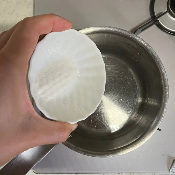 When looking for kanten in the grocery store, there are four different forms you can find it in – powder, stick, thread, and flakes. For this recipe, we are using powdered kanten, because it is the easiest one to work with for beginners. It also evenly dissolves in water.
