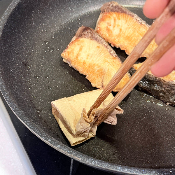 2. Sprinkling cooking sake – sprinkle cooking sake, let sit, then remove moisture with paper towels. This method eliminates the fishy odor and adds umami flavor from sake.