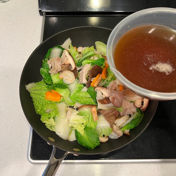The seasoning for chukadon is simple—salt, soy sauce, and chicken stock create a mild, balanced flavor, with oyster sauce often added for depth. Each ingredient brings its own unique umami flavor to the dish.
