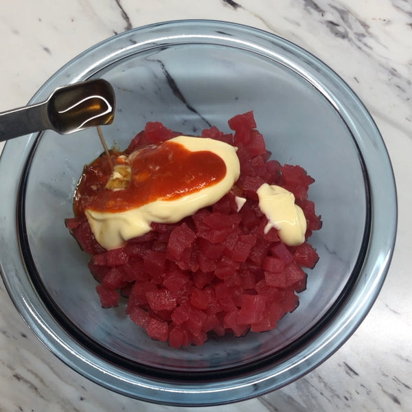 The spicy tuna topping is usually made with sashimi-grade raw tuna, Japanese mayo, sriracha, and a splash of soy sauce, but you can adjust it to taste with sesame oil, green onions, or jalapeño. For serving, top the crispy rice with avocado slices, sesame seeds, or a drizzle of unagi sauce for extra flavor.