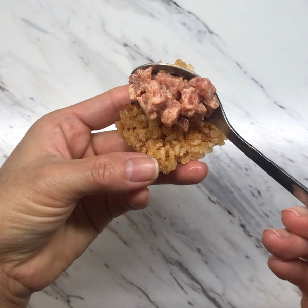 In a way, it echoes the spirit of yaki onigiri (grilled rice balls), but adds a bold twist with a creamy, spicy tuna topping. The real magic of this dish lies in the contrast: a golden, crispy base topped with a rich and savory tuna mixture. That combination of crunch and creaminess, heat and umami, is what makes every bite so satisfying.
