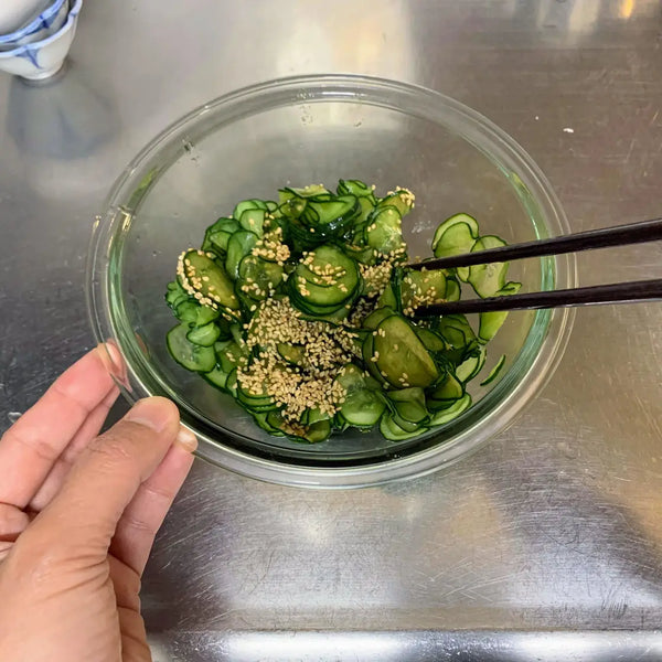 Cucumber sunomono is a salad made of sliced cucumbers that is then dressed with soy sauce, vinegar, and other seasonings. This kind of salad has a light flavor, making it the perfect side dish for a hot summer day. The freshness of the cucumber makes this salad the perfect companion for fried foods like tempura or karaage.