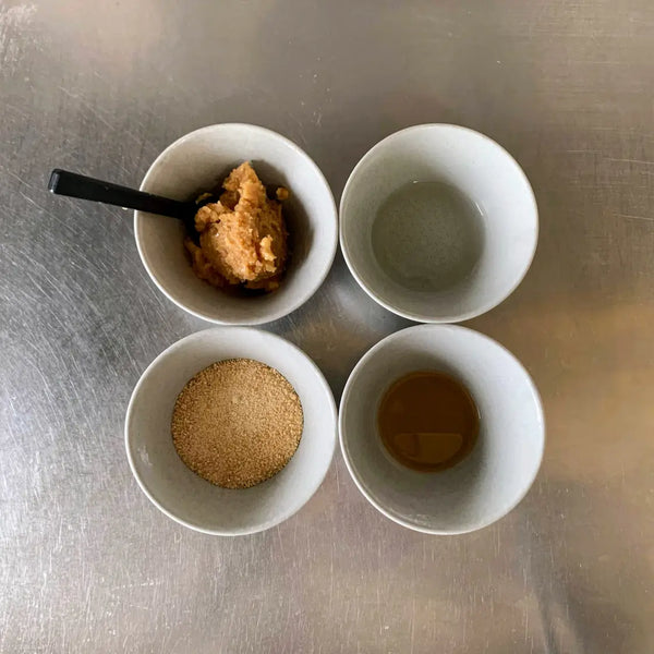 This sauce is essentially seasoned miso, made by cooking miso paste with Japanese seasonings like mirin and sake until it forms a thick, flavorful coating.