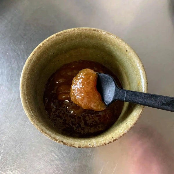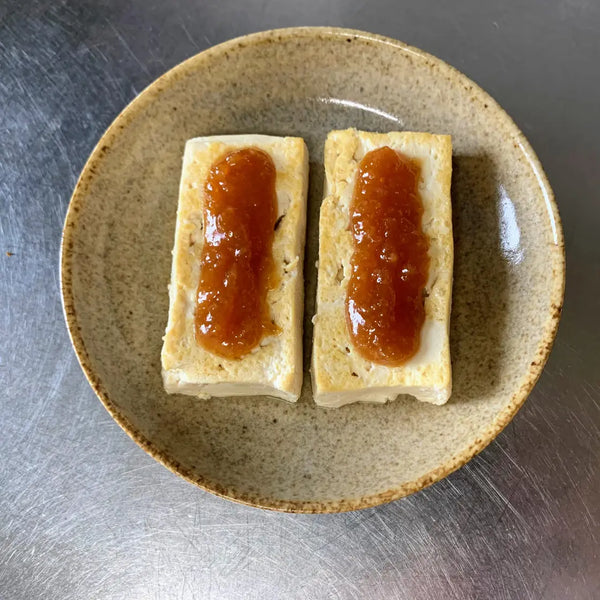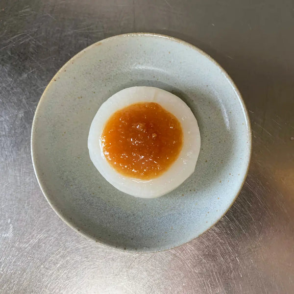 The origins of dengaku miso date back to the Eiroku period (1558–1570), when skewered and grilled tofu topped with miso paste became popular in Japan. The name "dengaku" was inspired by the skewered tofu’s resemblance to the dengaku-houshi, a man who danced to worship the god of rice fields and prayed for a good harvest during planting season.