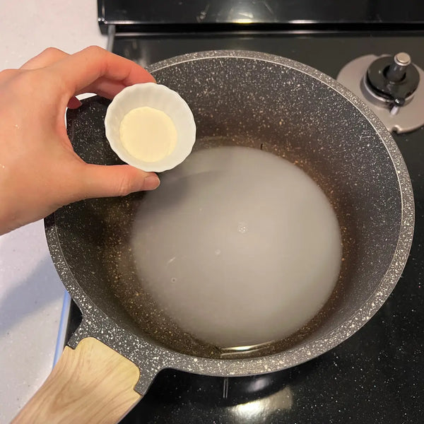 - Powdered Kanten needs to be thoroughly heated for it to work properly. If the heating process is not enough, it gets difficult to harden the Yokan.