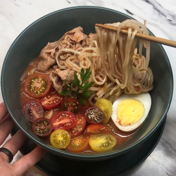 Picture this: a warm bowl of noodles, but instead of the usual broth made from soy or pork bones, you're greeted with a vibrant, tomato-based soup that’s refreshing and hearty at the same time. It’s got all the savory umami you’d expect, but with a zesty freshness that’s just… simply heartwarming.
