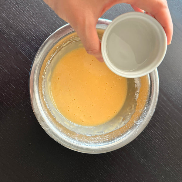 Jusou (baking soda) is used as a traditional Japanese leavening agent. It makes the dough expand more sideways, adds a slightly yellow color, and can taste bitter if overused. Baking powder can be substituted in double the amount.