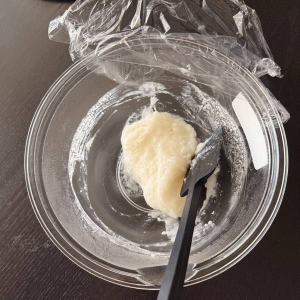 Wakaayu consists of two layers: a pancake-like outer layer and soft mochi (gyuhi) inside. Some versions also include sweet azuki bean paste. Gyuhi is made from mochi-ko or shiratama-ko (glutinous rice flour), which is essential in many wagashi, including daifuku and nerikiri. For simplicity, this recipe uses shiratama-ko and a microwave method.