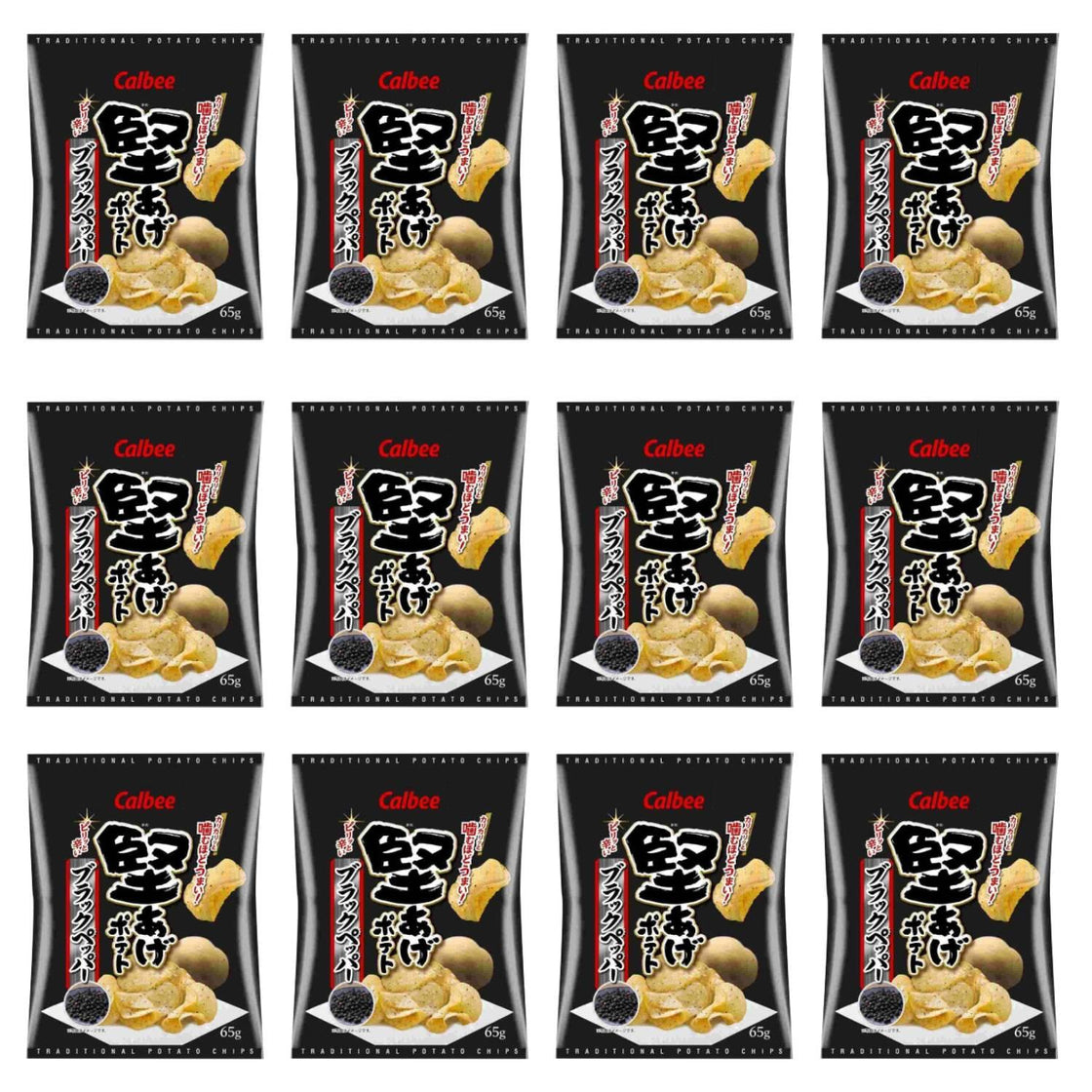 Calbee Kataage Crispy Black Pepper Potato Chips 65g (Box of 12 Bags)