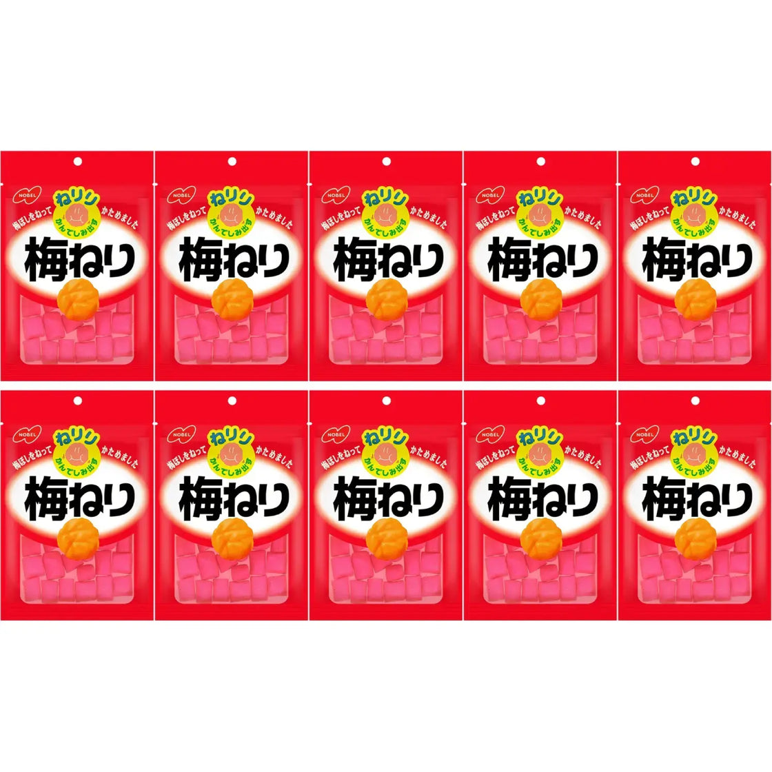 Nobel Neriri Ume Neri is a Japanese candy that is made from umeboshi (pickled plum) flesh. According to the manufacturer, the flesh is kneaded into dough, gets solidified, and is then cut into bite-sized pieces.